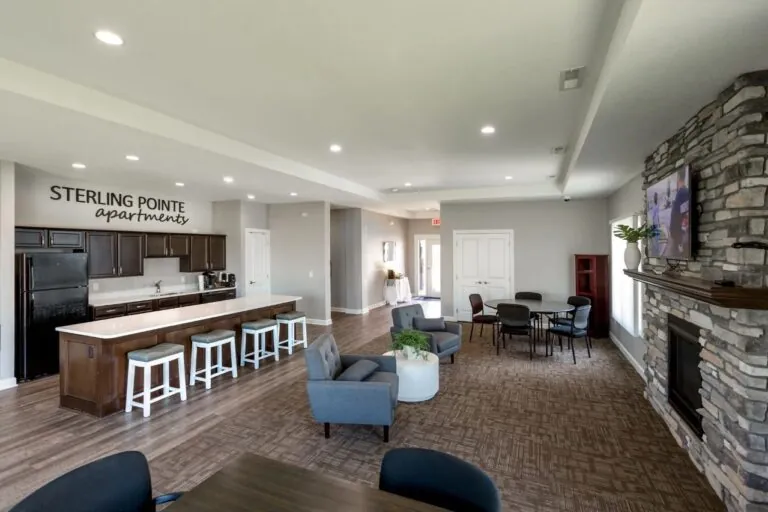 These spacious two and three-bedroom apartments in Johnston, IA feature open kitchens, high ceilings, and in-unit laundry, with community perks like a pool, fitness center, dog park, and playground.